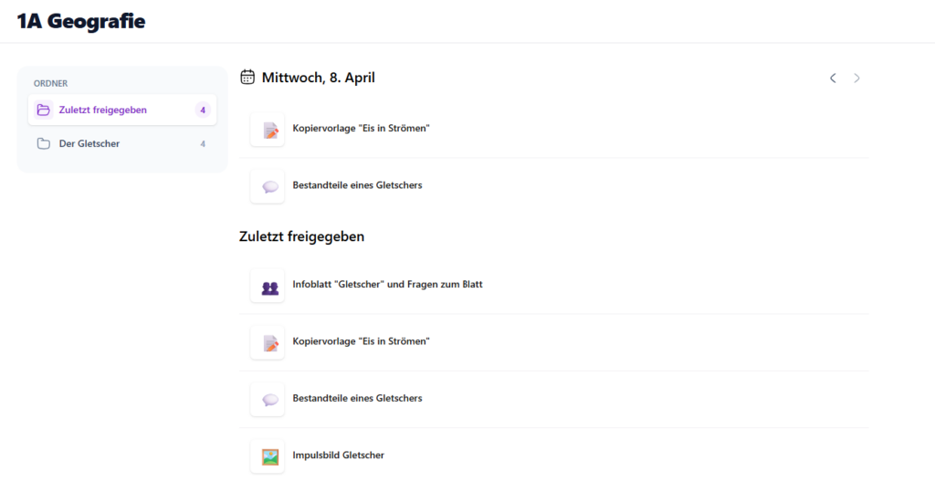 - Kürzlich freigegebene Materialien werden dort automatisch oben angezeigt